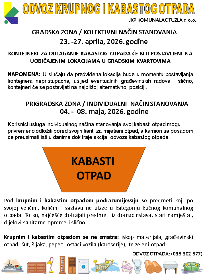 Zbog velike količine i težine snijega zabilježen je povećan broj oborenih stabala i granja. U ovim aktivnostima, pored Zimske službe, angažovani su i radnici Radne jedinice „Parkovi“. Specijalizovane ekipe za sječu od ranih jutarnjih sati 28.03.2026. godine u kontinuitetu rade na raščišćavanju terena na više lokacija. Od 17,00 sati 28.03 do 17,00 sati 29.03.2026. godine vršeno je uklanjanje oborenih stabala i granja na lokacijama Gradina, Đape, Sjenjak, Solina, Slavinovići, ulica Šabana Zahirovića, Rudarska, Orašje, Franjevačka i na putu za Husino.